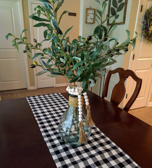 White Farmhouse Beads, Garland, Home Decor, Boho, Centerpiece, Tablescape Decor, Black Decor, Boho Beads, Buffalo Plaid, Rae Dunn, Decor